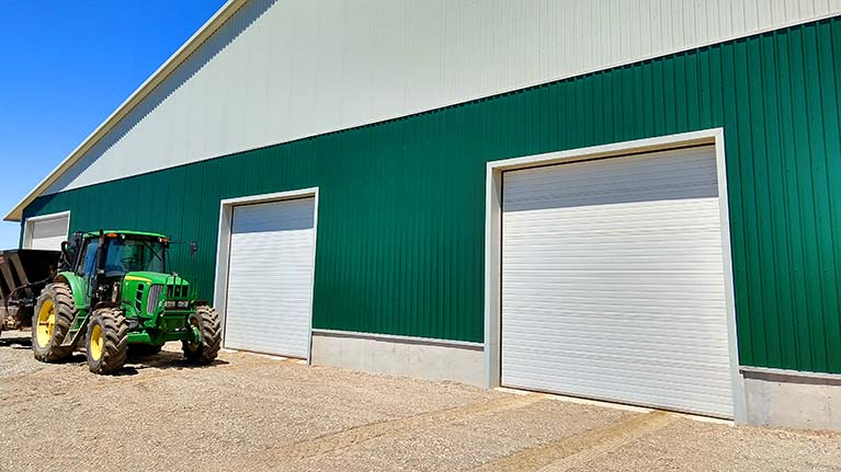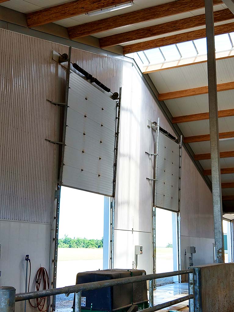 Easy Lift Doors installed these overhead doors for a dairy farm in Mount Elgin.