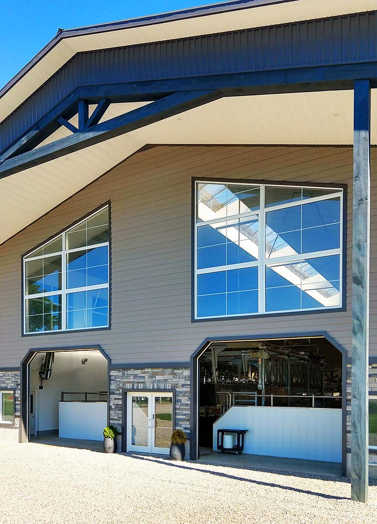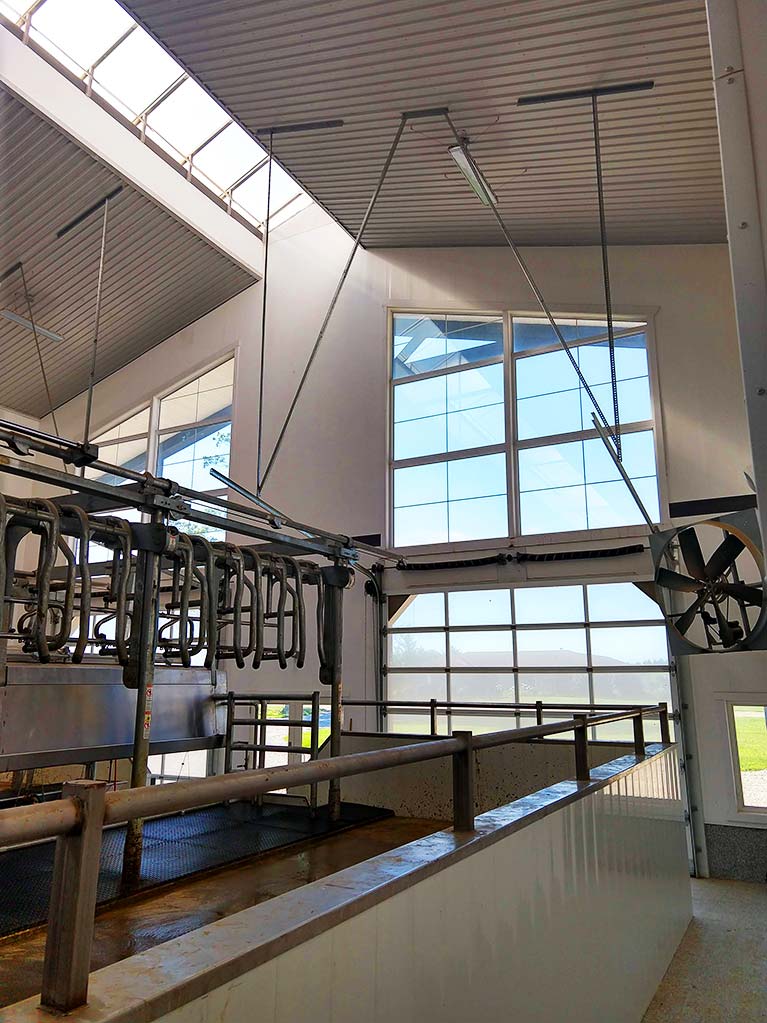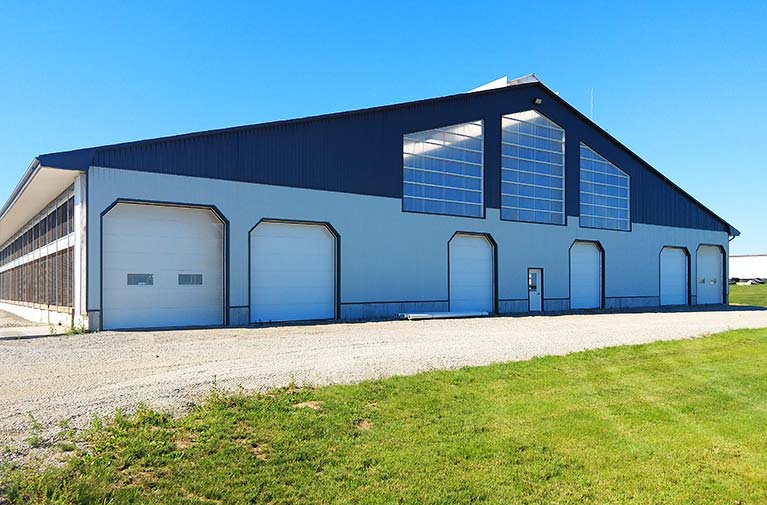 Easy Lift Doors installed these overhead doors for a dairy farm in Norwich. At the front of the dairy barn we installed 14′ x 12′ and 13′ x 13′ overhead doors with insulated glass sections and at the rear 13′ x 13′ and 12′ x 12′ overhead doors with regular steel sections.
